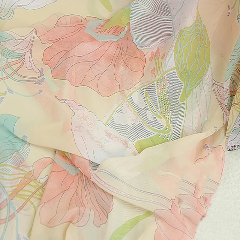 HLQON высокого качества с цветочным принтом шифоновая ткань мягкая удобная одежда ткани для женская летняя обувь платье, юбка на метр