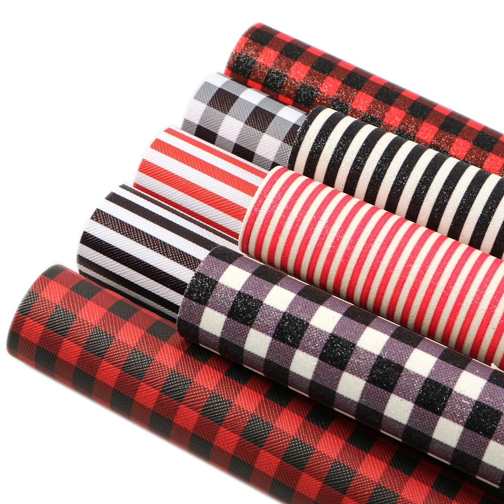 David аксессуары 20*34 см 8 шт./компл. в клетку в полоску из искусственной синтетической кожи набор ткани для бантов DIY материалы ручной работы, 1Yc10132