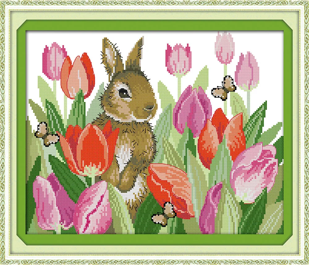 Радость воскресенье кролик в тюльпаны роспись Счетный напечатаны на холсте 11CT14CT китайские наборы для вышивки крестом рукоделие Наборы для ...