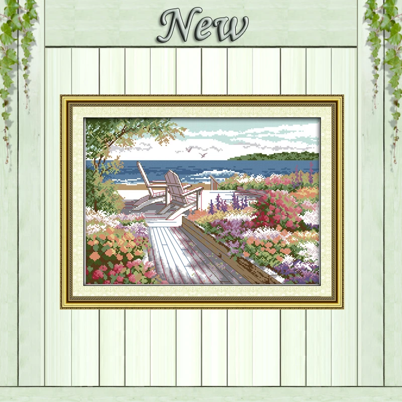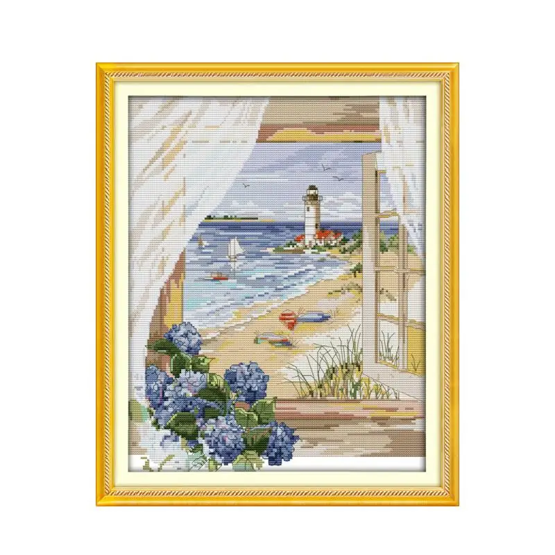 Приморский пейзажи, учитываются напечатан на холсте DMC 11ct 14ct вышивки крестом комплект, Рукоделие Набор вышивки, морской пейзаж Домашний Дек...