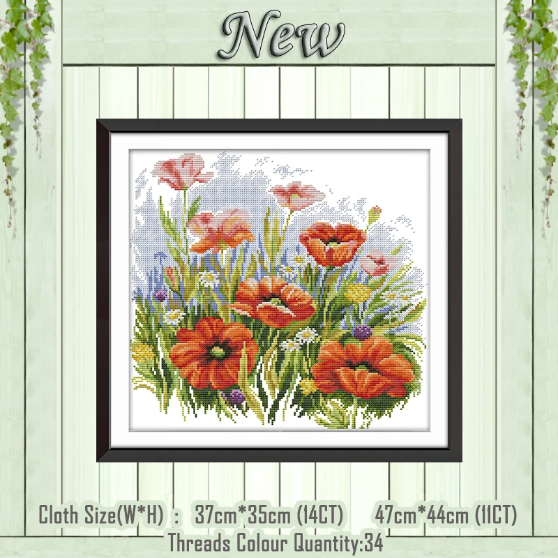 Цветочный Мак пейзаж Декор Живопись Счетный напечатаны на холсте DMC 14CT 11CT Китайский вышивки крестом Рукоделие наборы для ухода за кожей выш...