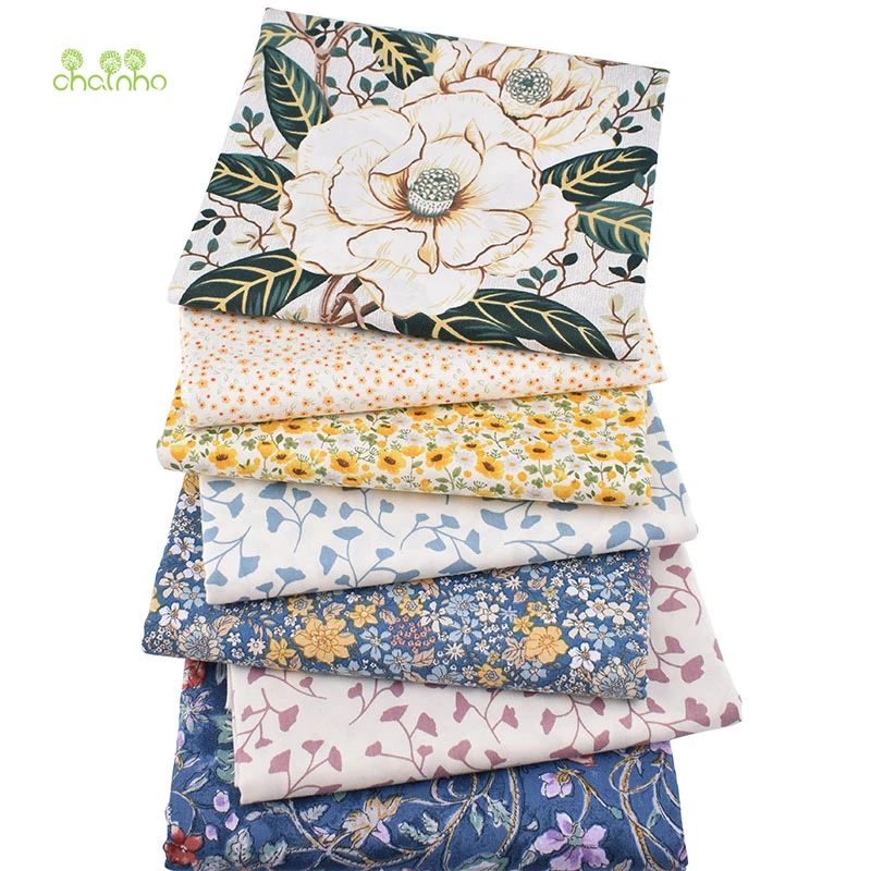 Chainho, 7 шт., цветок камелии, саржевая хлопковая ткань с принтом, Лоскутная Одежда для шитья своими руками, стеганый материал для малышей и дете...