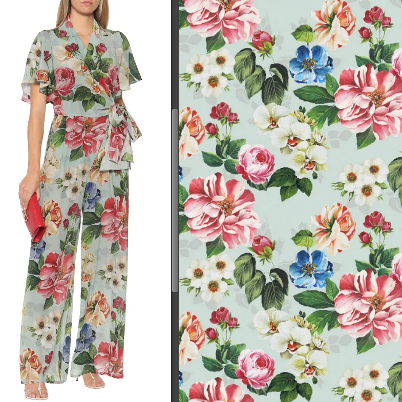 Большая розовая роза цветочный принт шелковая мягкая шифоновая ткань мягкая шифоновая тонкая ткань для платья, длинное пляжное платье шифоновая одежда ткань