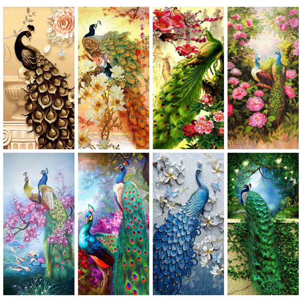 Huacan алмазная вышивка 5d животные картины из страз мозайка павлины декоративные наклейки на стену
