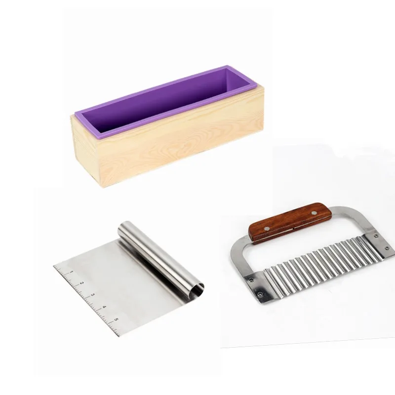 Силиконовый мыльный комплект пресс-форм Гибкая Прямоугольная форма с деревянной коробкой, 2 шт. нож для мыла из нержавеющей стали для CP и MP д...