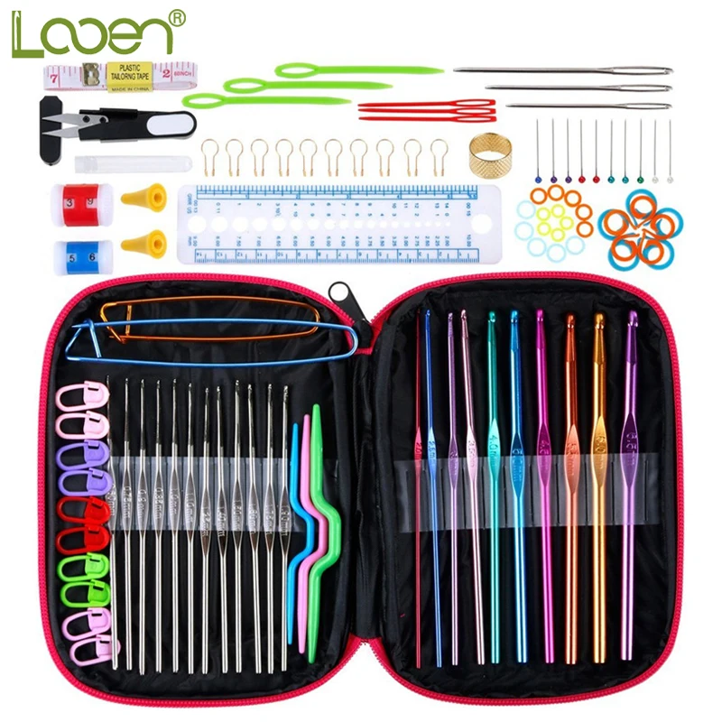 Looen крючок для вязания набор 100 шт с пряжи Вязание Иглы Швейные полный набор инструментов вязать калибровочных ножницы держатели петель инс...