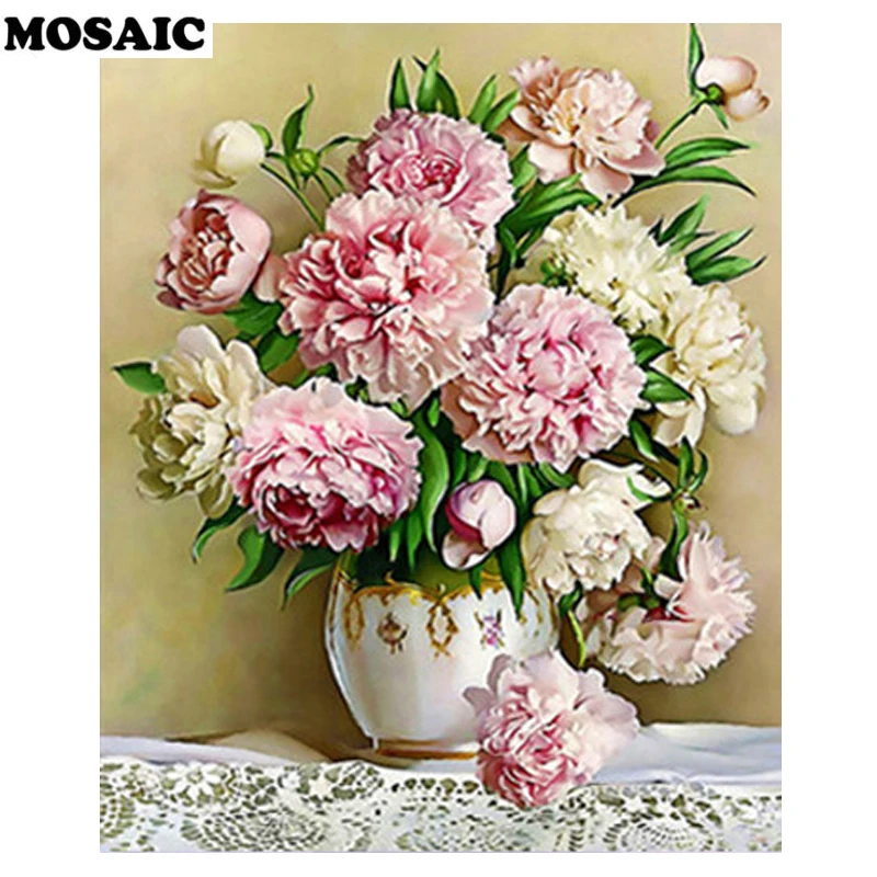 30x40 см DIY 5D Diamond вышивка круглые алмазы картина цветы Организация квадратный Стразы Вышивка крестиком пион