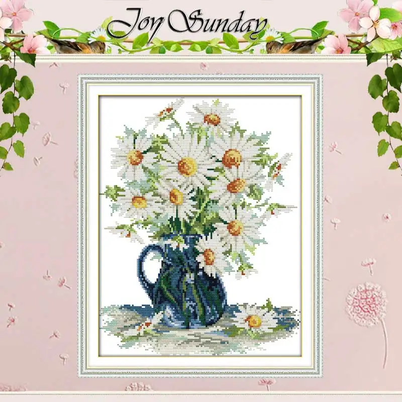Бесплатная доставка ваза с ромашками Счетный крест вышитые цветы вышивка крестом 11CT 14CT Вышивка крестом комплект ручной работы вышивка для ...