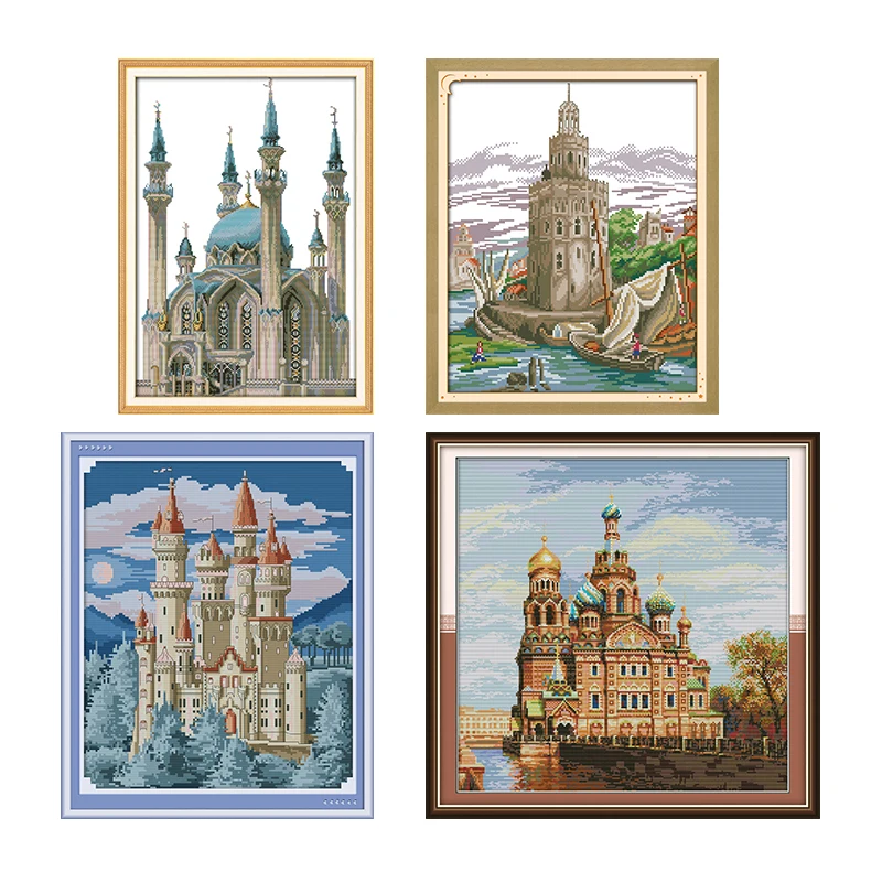 Joy Sunday синий замок вышивка крестиком пейзаж узоры Aida ткань DMC с принтом холст вышивка набор крестообразные Швейные иглы Набор