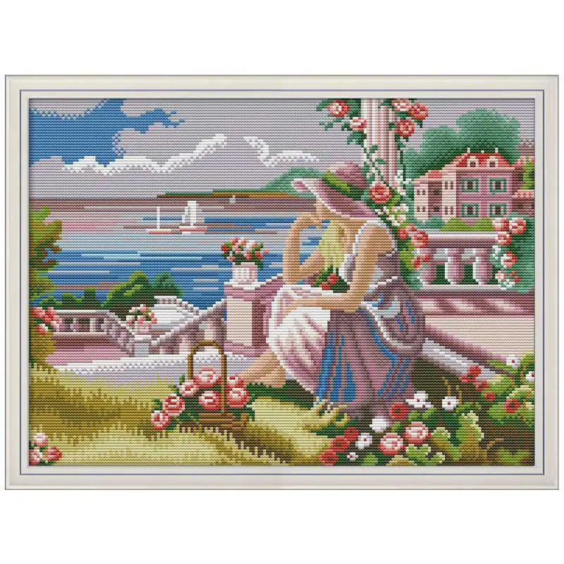 Девушка глядя на море Счетный напечатаны на холсте DMC 11CT 14CT DIY наборы Китайский вышивки крестом вышивка рукоделие Наборы для ухода за кожей