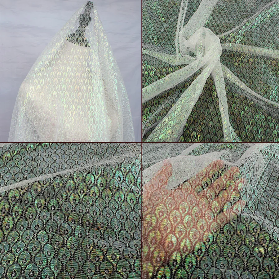 Переливающийся Нейлон сетчатая ткань Многоцветный Павлин перо стиль летняя одежда свадебные платье решений