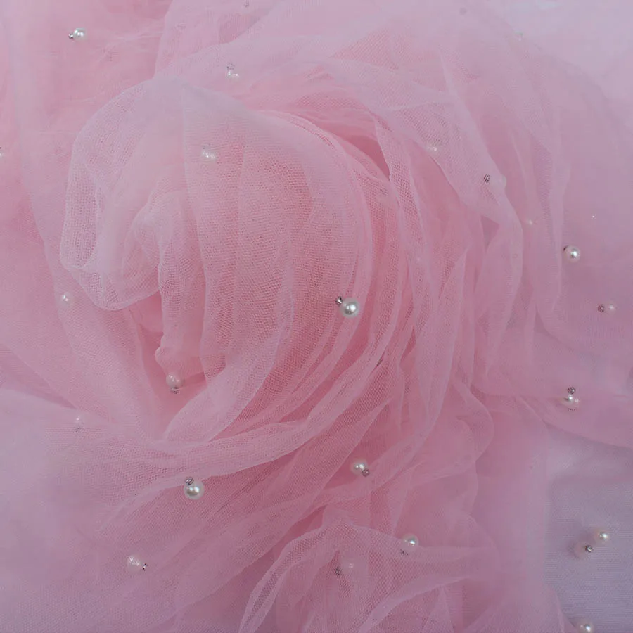 1 ярд жемчуг пряжа сетка ткань для свадебное платье ткань мягкая тюль вечерние украшения 160 см белый розовый