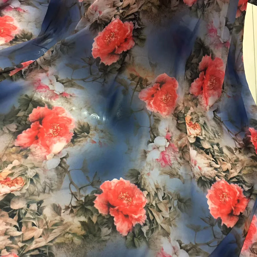 Мягкий 30D Пион печатных шифон Ткань Цветочный шелковый шарф Косплей платье юбка одежда ткань