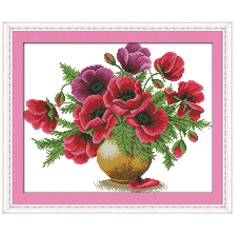 Ваза для цветов с маками Счетный напечатаны на холсте DMC 11CT 14CT DIY kit вышивки крестом вышивка рукоделие Наборы для ухода за кожей домашний деко...
