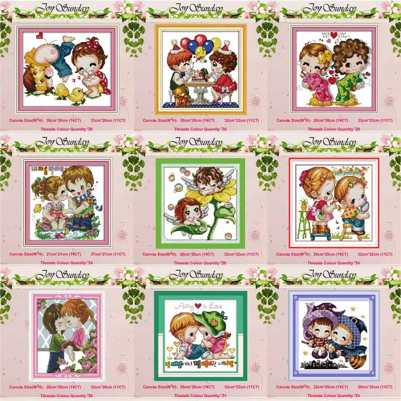 Маленький мальчик девочка влюбленные Счетный 11CT 14CT Набор для вышивки крестом мультфильм DIY DMC Вышивка крестом Набор для вышивания рукоделие...