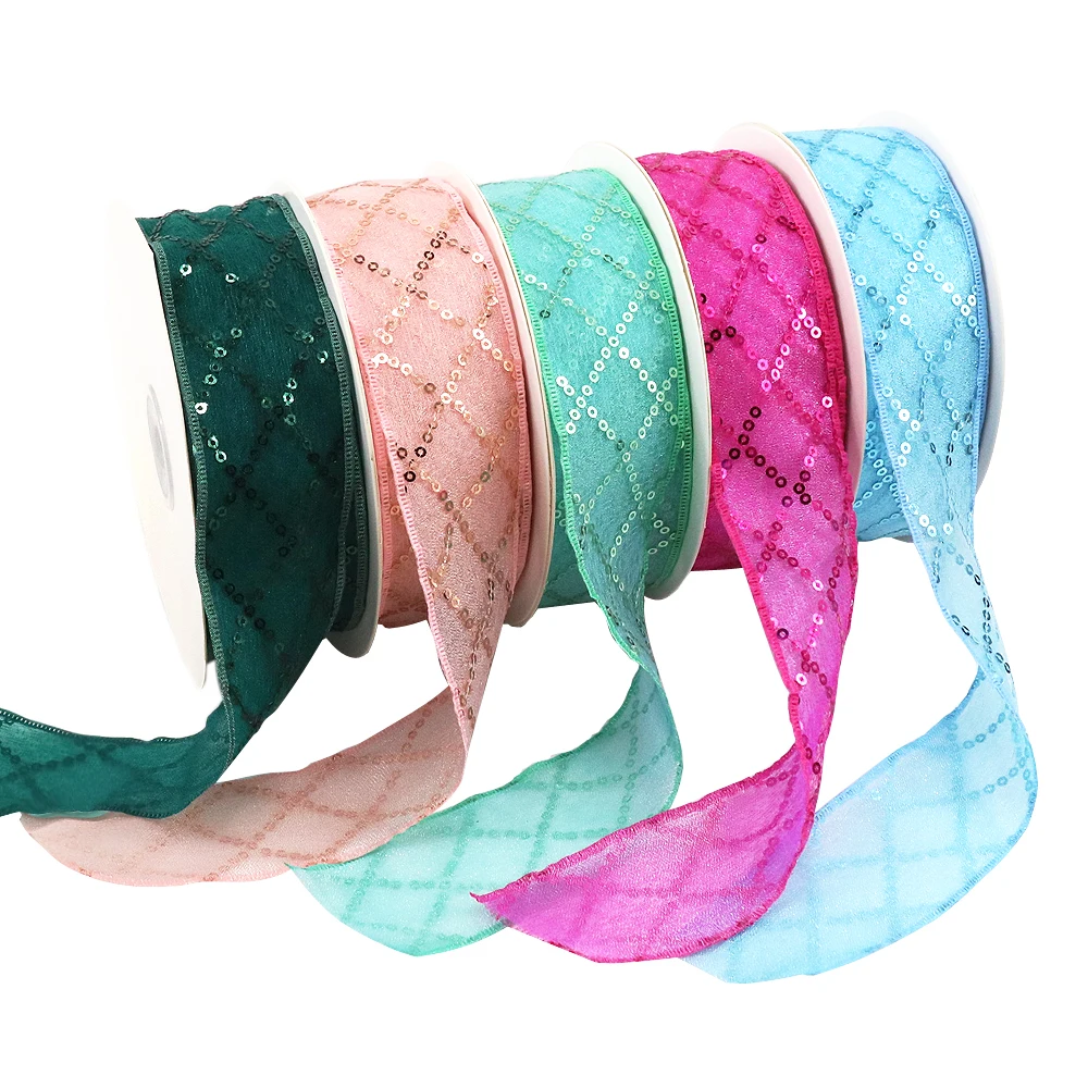 Дэвид Аксессуары 1.5 "38 мм пайетки лента органза 25 ярдов, DIY материалы ручной работы, 25Yc3043