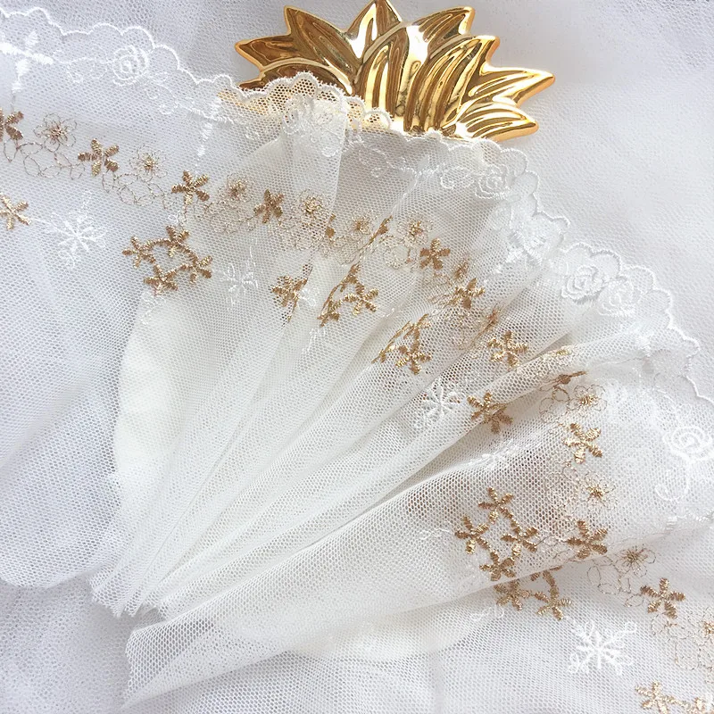 Тонкая золотая нить вышивка Цветочная Сетка кружевная отделка Одежда украшение для дома вышивка кружевные аксессуары 15 см в ширину