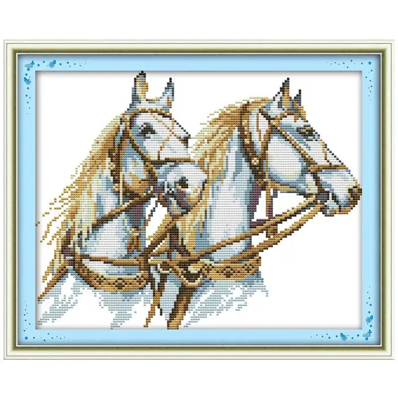 Две лошади животные Счетный напечатаны на холсте DMC 11CT 14CT DIY kit вышивки крестом вышивка рукоделие Наборы для ухода за кожей домашний декор