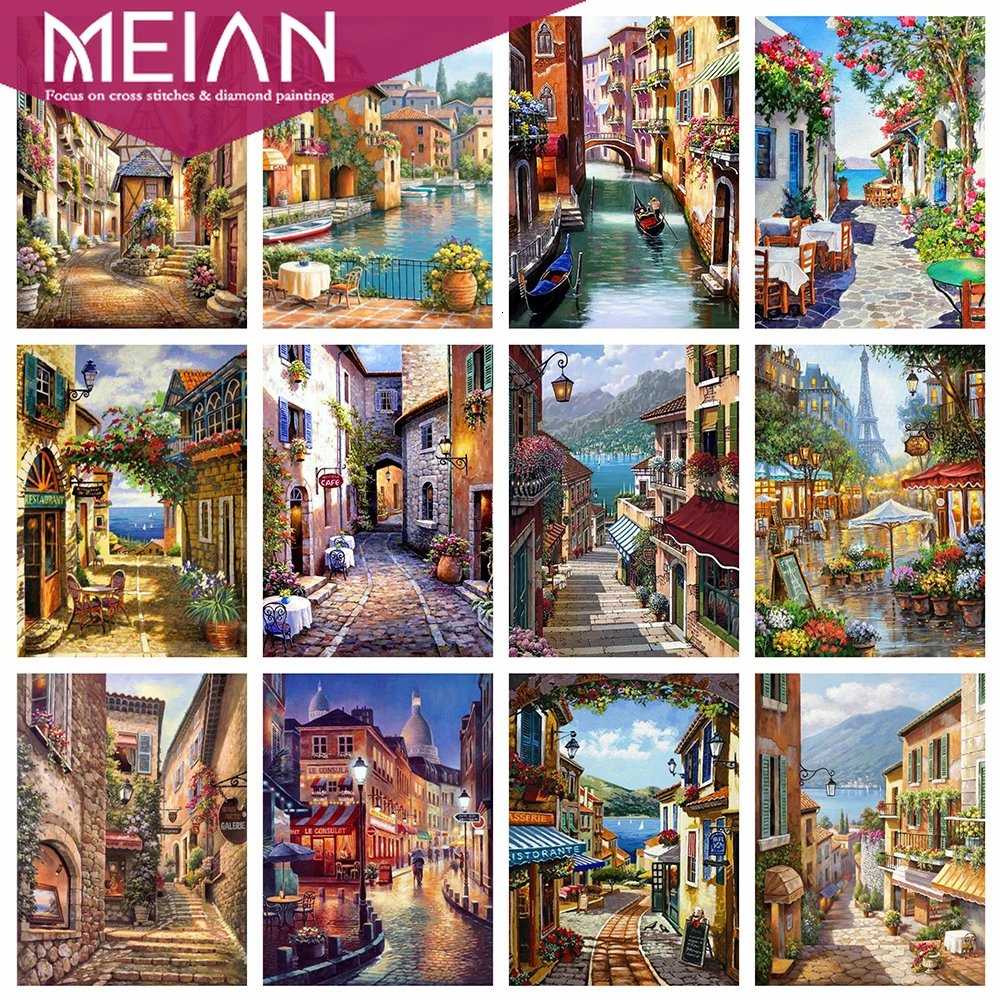 2020 MEIAN City Алмазная картина вышивка Пейзаж Вышивка крестом 5D Сделай Сам Полный Круглый Стразы мозаика украшение для дома