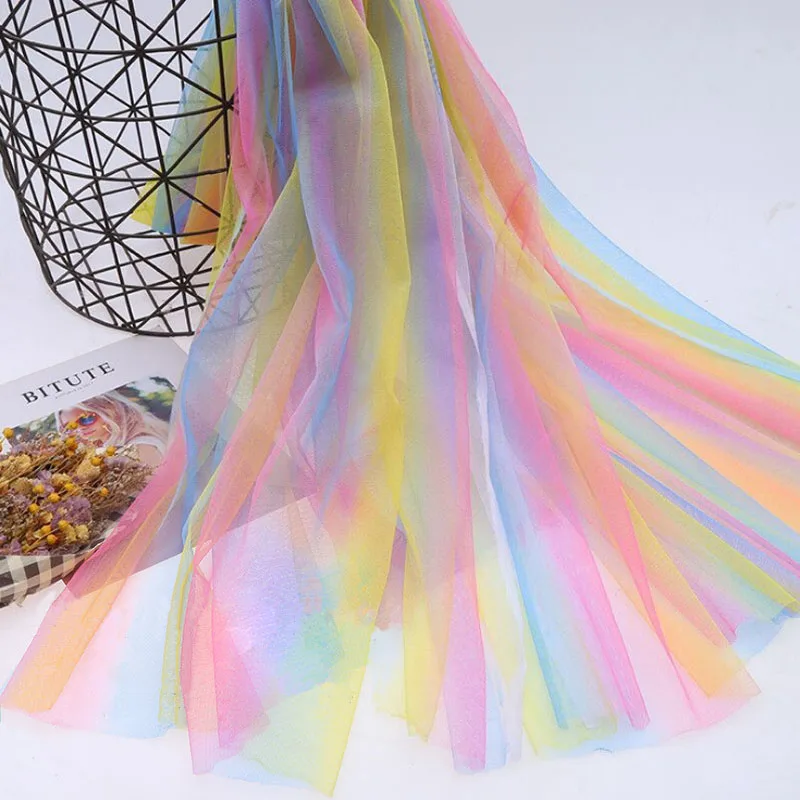 Красочные Радуга градиент тюль сетки ткань вечерние Для праздничное платье Чистая Tissu мягкие Pettiskirt Детское платье принцессы с вуалью пачка ...