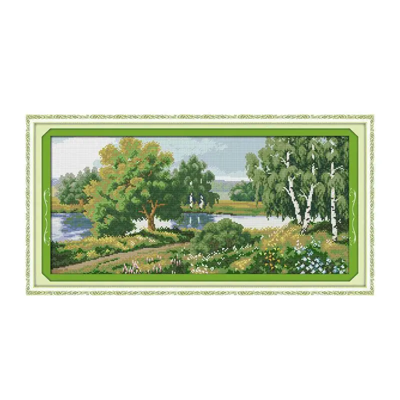 Речной пейзаж зеленый вышивки крестом материалы ручной посылка Вышивание Мебель Ткань картина
