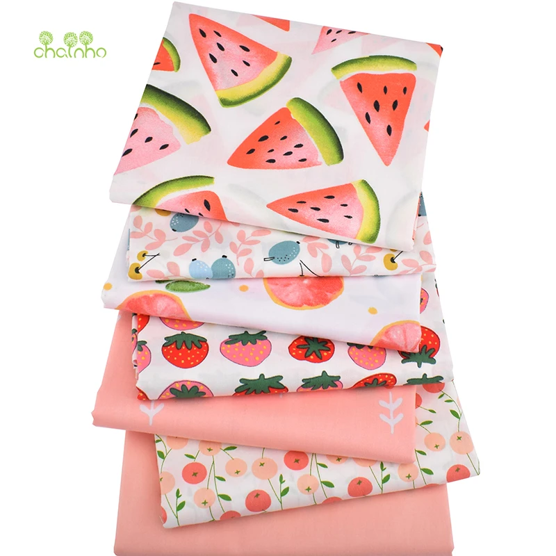 Chainho печатная саржевая хлопковая ткань, Лоскутная Ткань, мультяшная фруктовая ткань, DIY шитье и материал для стеганых изделий для малышей и д...