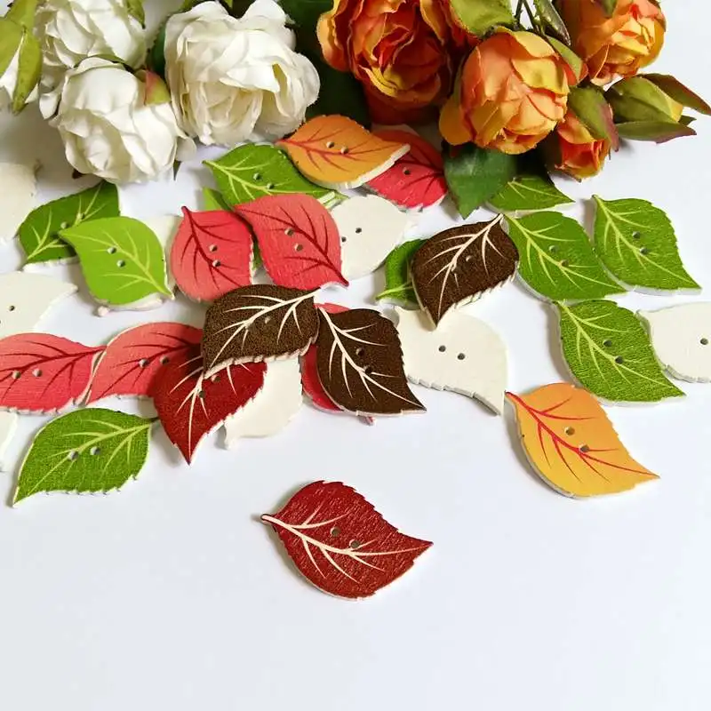 120 шт./упак. разноцветные листья деревянные пуговицы в форме швейные кнопки для скрапбукинга для ремесла аксессуары