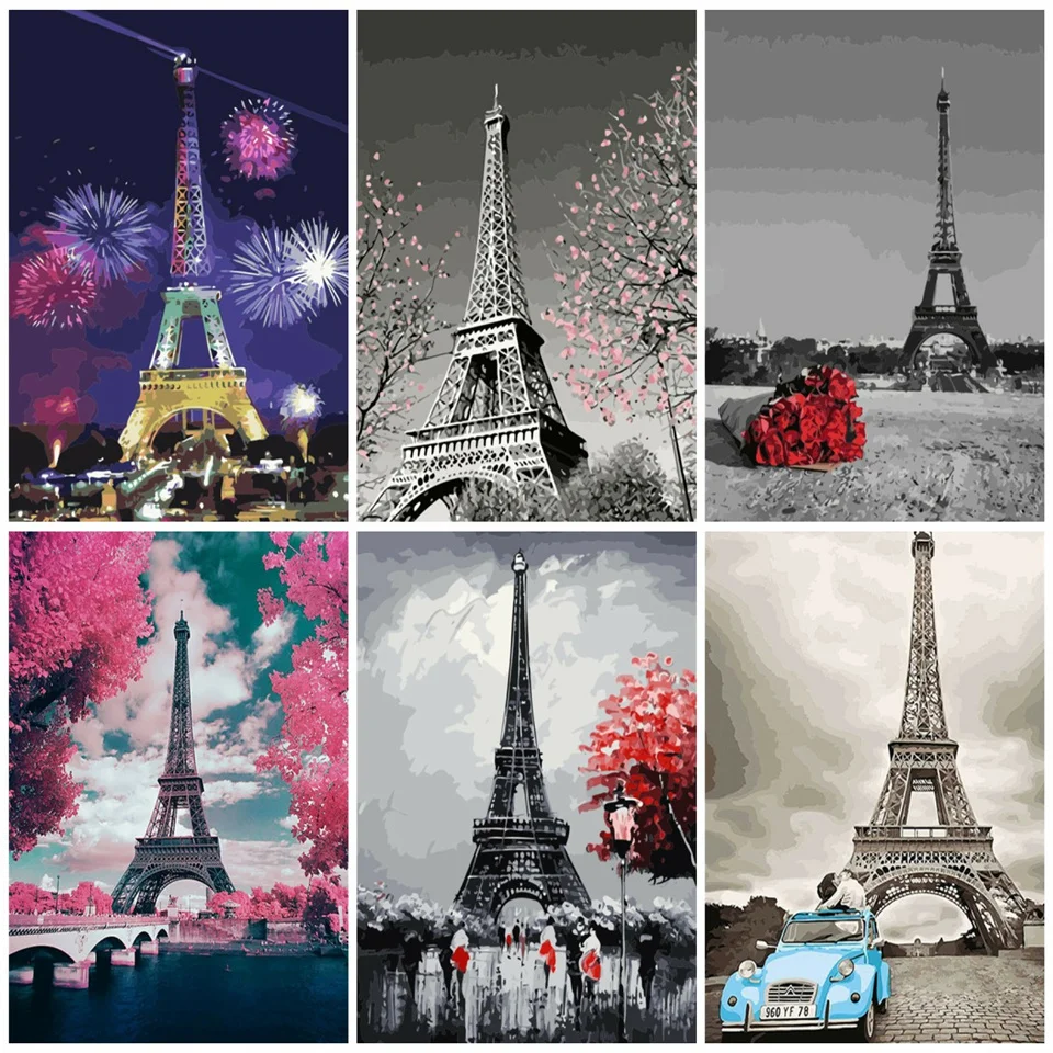 Azqsd масляная краска ing по номерам башня краска собственного приготовления по номеру Холст Краска ing наборы для взрослых домашний декор 40x50 см