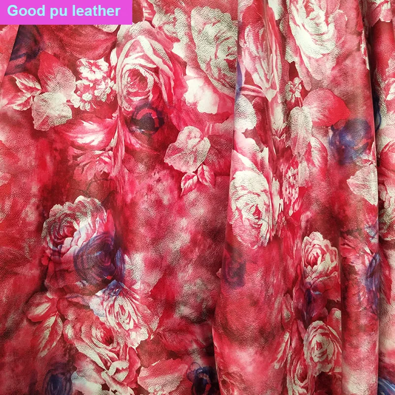 Хорошее 69*50 см цифровая печать роза искусственная кожа ткань искусственная кожа мягкая синтетическая кожа для сумки швейный материал Diy Оде...