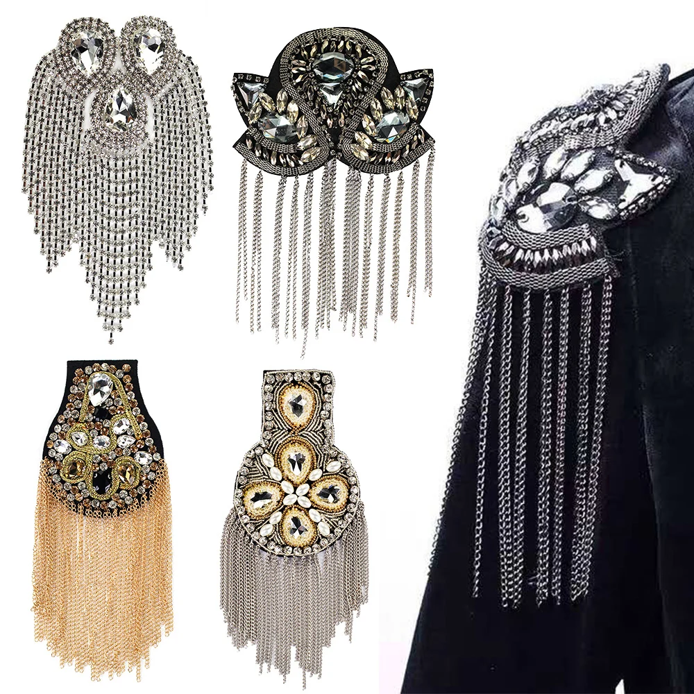 2 pc/pair бисера горный хрусталь Костюмы с заплатками и лентами бахромой сцена практичное пальто с бахромой погоны швейной алмаз Craft