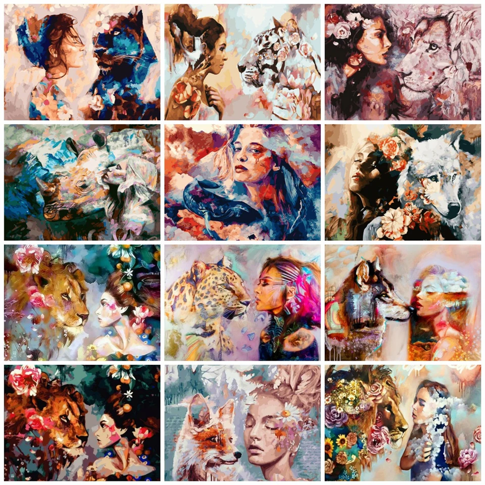 Обрамленная картина лев девушка маслом по номерам взрослых красочные краски домашнего декора картина для гостиной домашнего декора