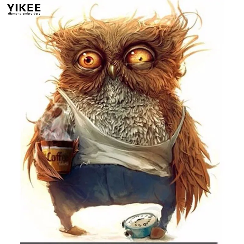 H262 алмазов картина мультфильм животных, Кофейная сова, 5d diy алмазов картина мультфильм сова