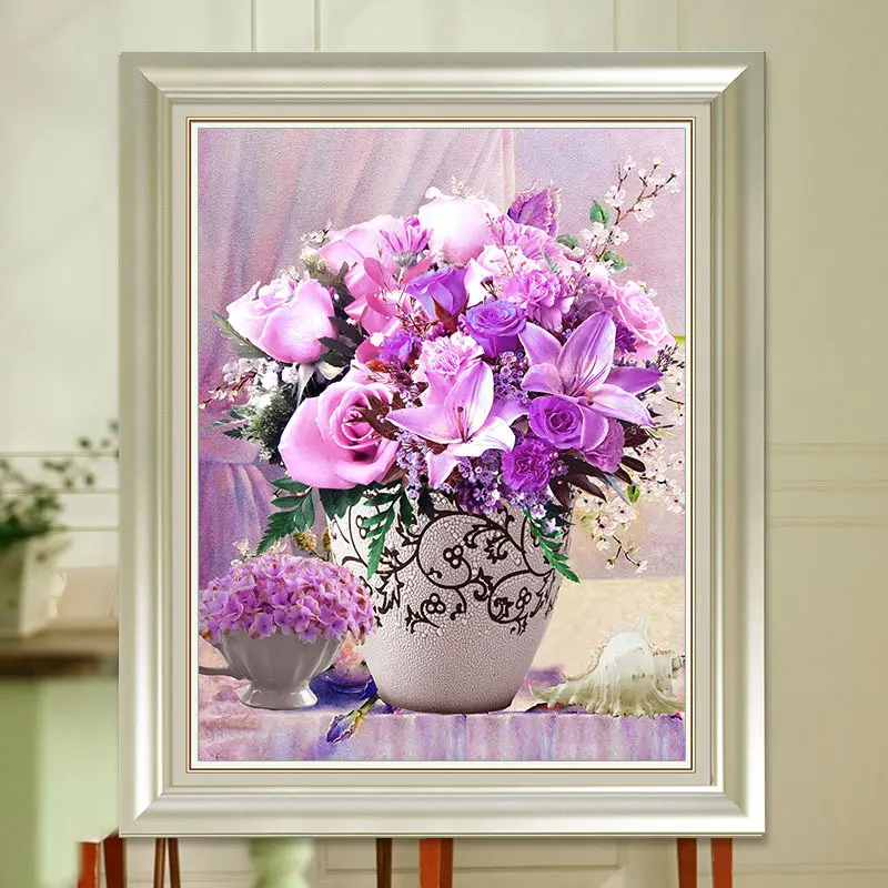 Рукоделие искусство ремесла 5D Diy алмазная живопись вышивка крестиком фиолетовый цветок Алмазная вышивка Цветочная серия ваза мозаика карт...