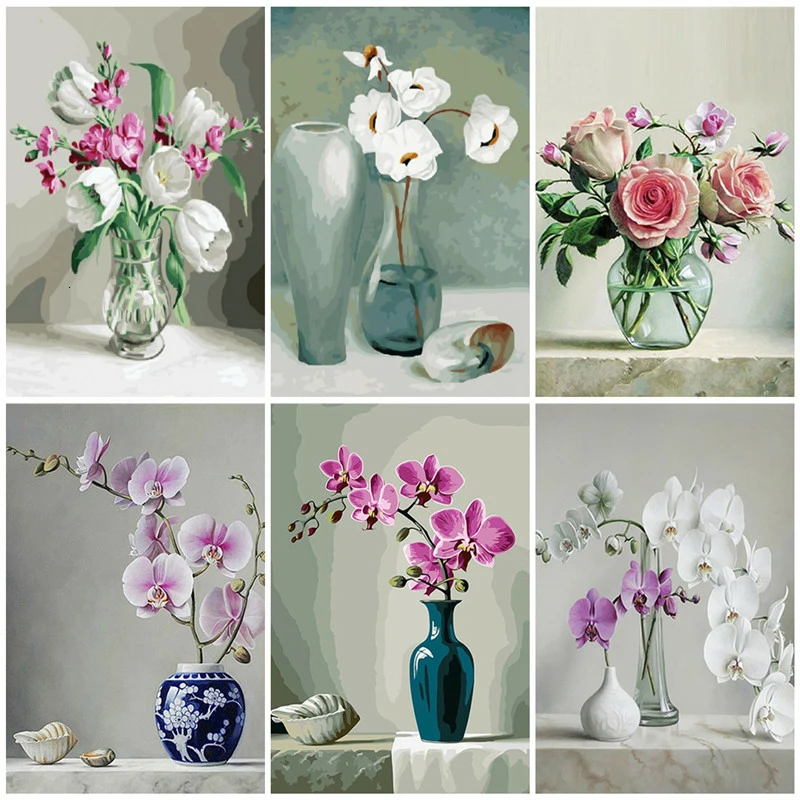 DIY Безрамное картина по номерам Цветы Ваза Картины Холст Картины Для Гостиной Домашнего декора япония