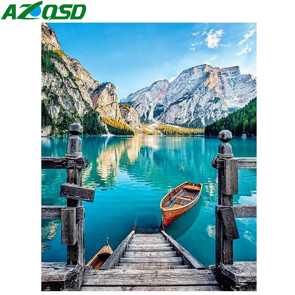 Azqsd корабль живопись по номерам картины холст своими руками Безрамная картина маслом Настенная картина с ландшафтом домашний декор SZGD167
