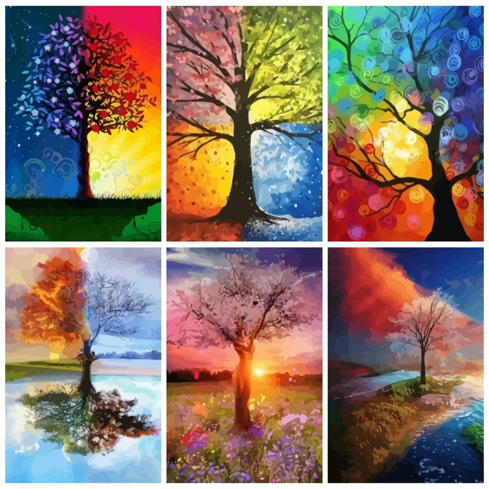 AZQSD Unframe масляная краска Набор цифр Дерево DIY Ручная Раскраска по номерам пейзаж акриловая краска домашний уникальный подарок