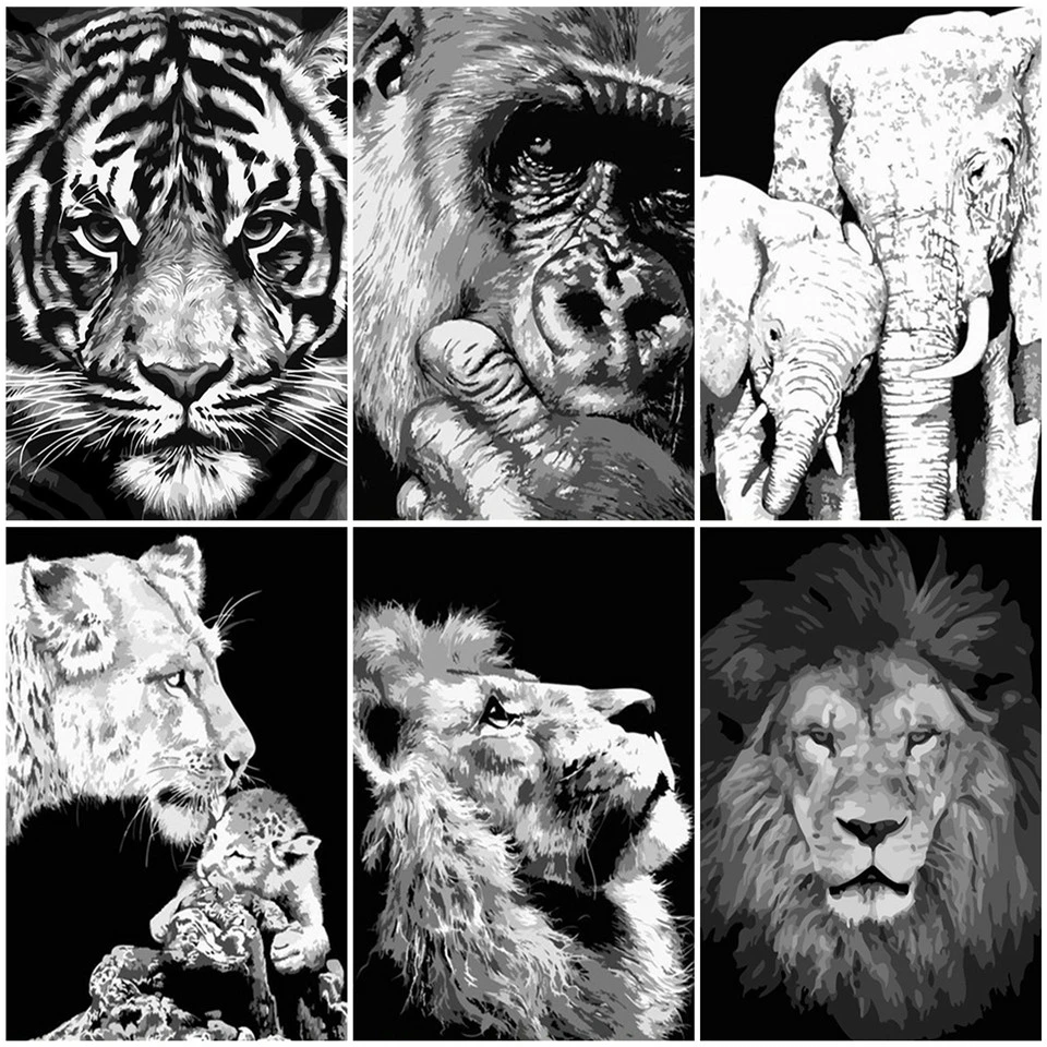 AZQSD картина маслом по номерам черно-белое животное украшение для комнаты акриловая краска окраска по номерам Лев уникальный подарок