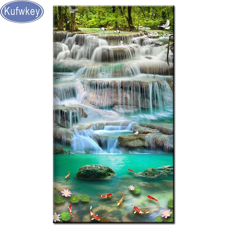 60x120 см вышивка крестиком Бриллиантовая мозаика пейзаж водопад koi Алмазная картина Полная площадь круглая дрель продажа 5d головоломка