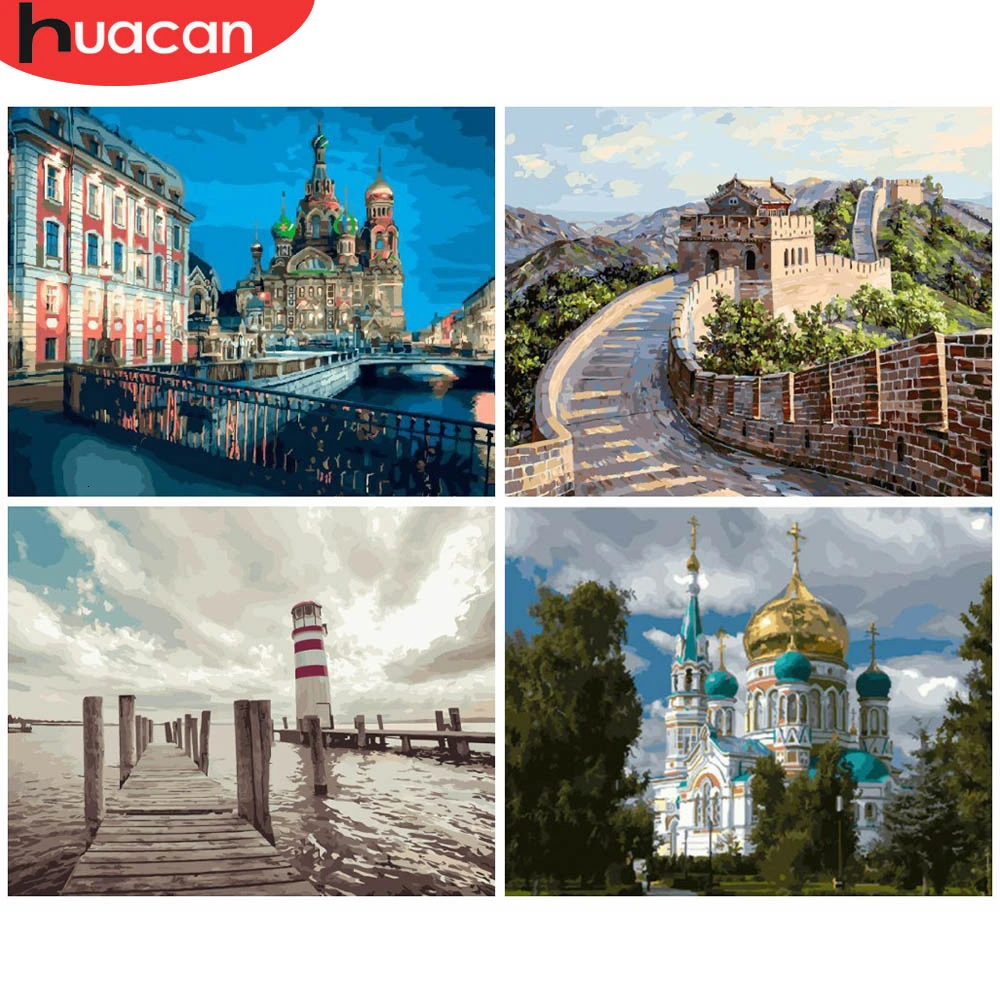HUACAN живопись по номерам Городские пейзажи акриловые картины для рисования на холсте для взрослых украшение дома подарок