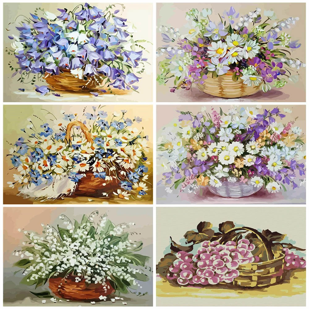 AZQSD раскраска без рамки по номерам цветы Домашнее украшение масляная краска по номерам ваза акриловая краска DIY Ручная Краска ed подарок