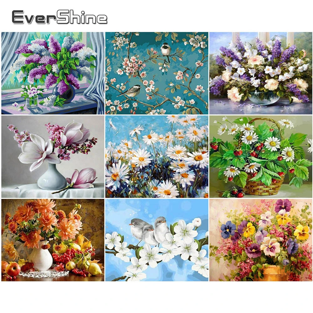 EverShine роспись по номерам цветы Ручной росписью Раскраска по номеру Домашнего декора