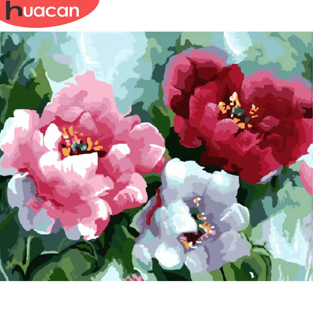 HUACAN Раскраска по номерам цветы Пион расписанная вручную масляная живопись наборы холст самодельные картины украшение дома подарок
