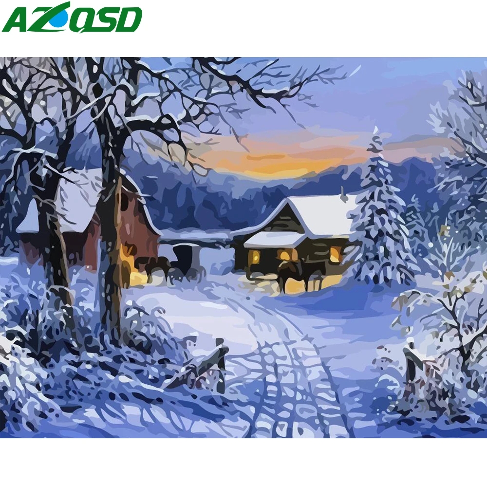 Картина azqsd по номерам зима DIY Unframe ручной работы подарок акриловые масляные краски по номерам набор Декорации для дома