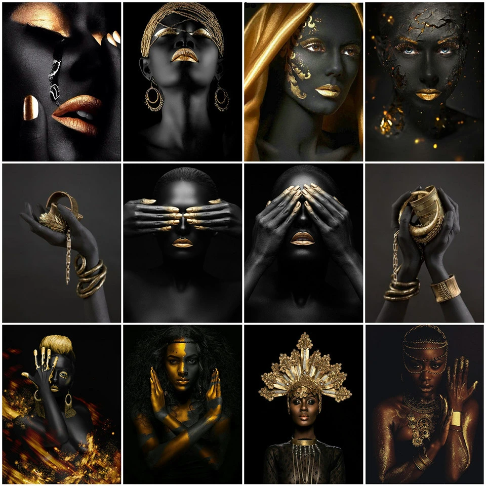 AZQSD DIY окраска по номерам черного золота африканская Женская акриловая краска украшение масляная живопись на холсте Рисунок ручная роспись подарок
