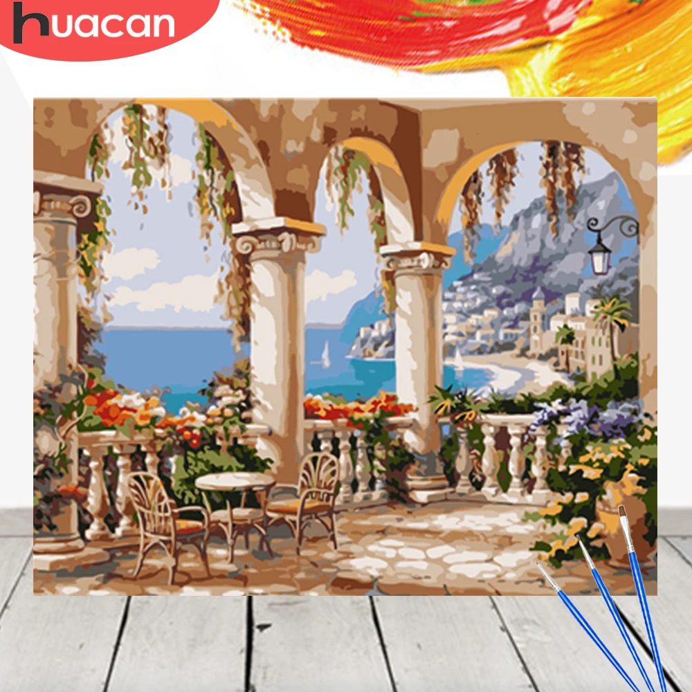 HUACAN, картина маслом, морской пейзаж, Раскраска по номерам, акриловый рисунок, Картина на холсте, настенная живопись, сделай сам, домашний дек...