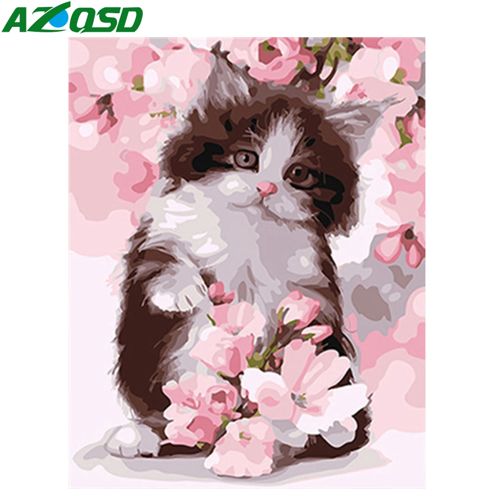 AZQSD DIY Unframe краска по номерам кошка настенная художественная акриловая краска масляная краска по номерам животное на холсте подарок ручной р...