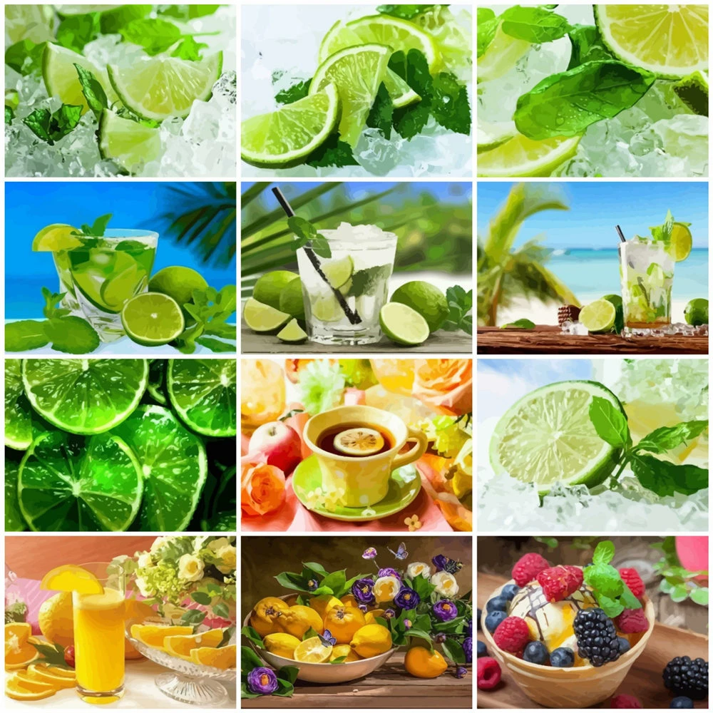HUACAN живопись маслом по номерам лимон фрукты расписанные вручную наборы холст для рисования самодельные картины еда украшения дома Художес...