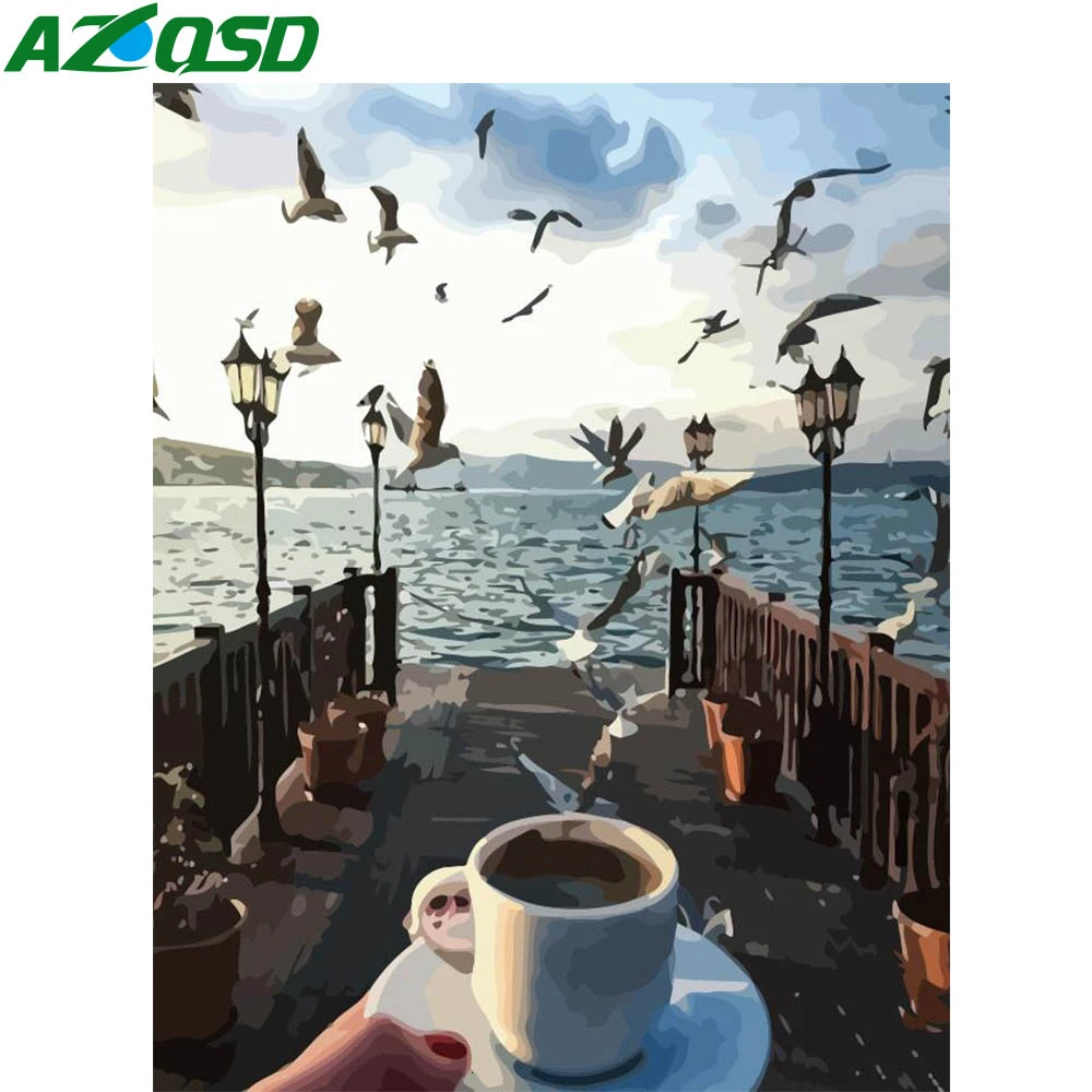 AZQSD DIY Unframe масляная краска ing по номерам кофейный набор кофейных чашек на холсте акриловая краска Раскраска по номерам пейзаж уникальный под...