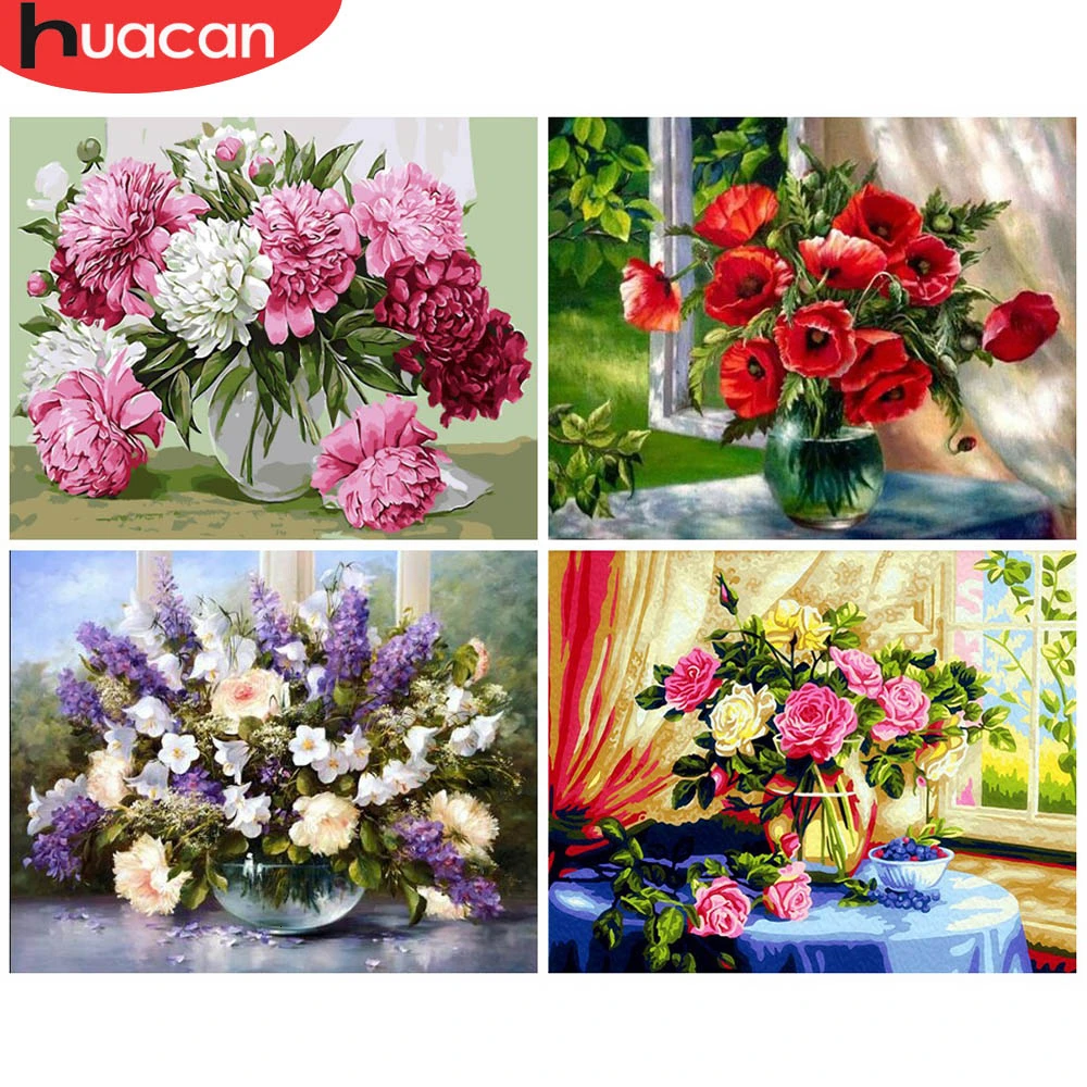 HUACAN живопись по номерам Цветок Ручная роспись рисунок на холсте акриловые картины украшение дома подарок