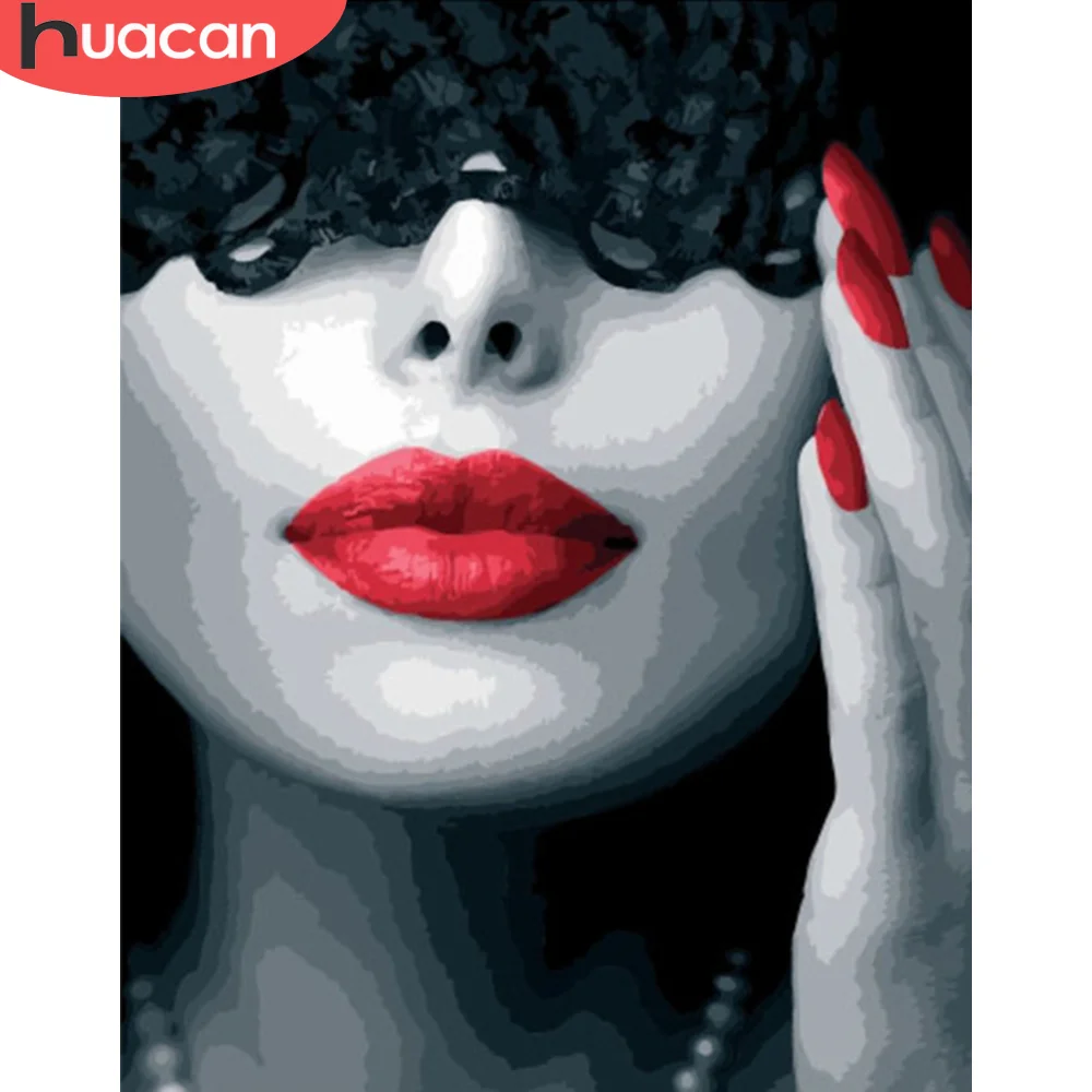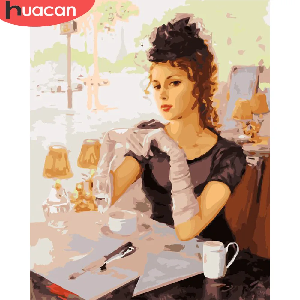 Картина HUACAN по номерам девушка, рисование лица на холсте, настенное искусство для гостиной, сделай сам, фотографии по номерам, домашний декор